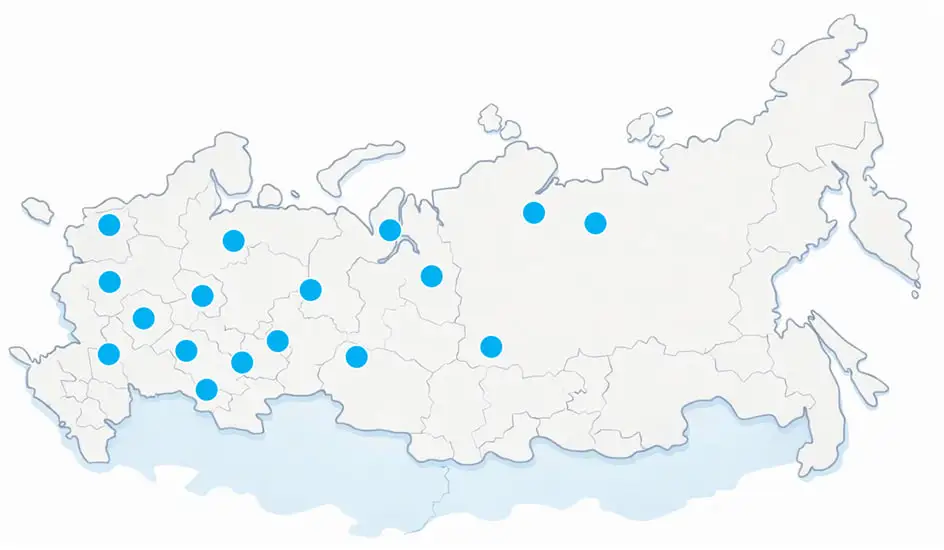 Москва и МО, Санкт-Петербург, Краснодар, Ростов-на-Дону, Хантымансийск, Нефтеюганск, Нягань, Новый уренгой и др.