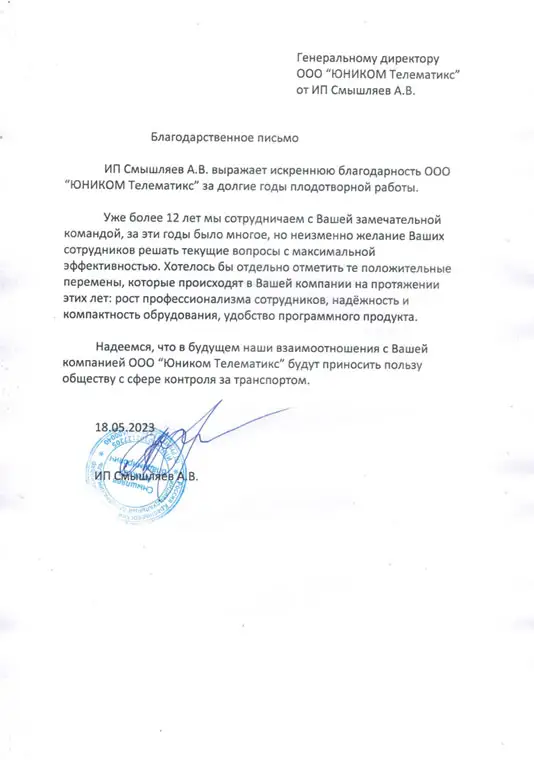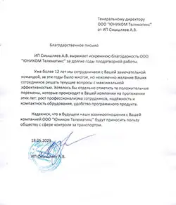 Надеемся, что в будущем наши взаимоотношения с Вашей компанией будут приносить пользу обществу в сфере контроля за транспортом.