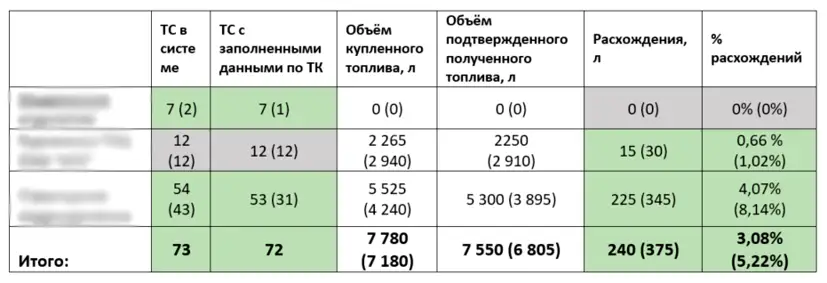 Автоматическая сверка купленного и заправленного топлива по топливным картам