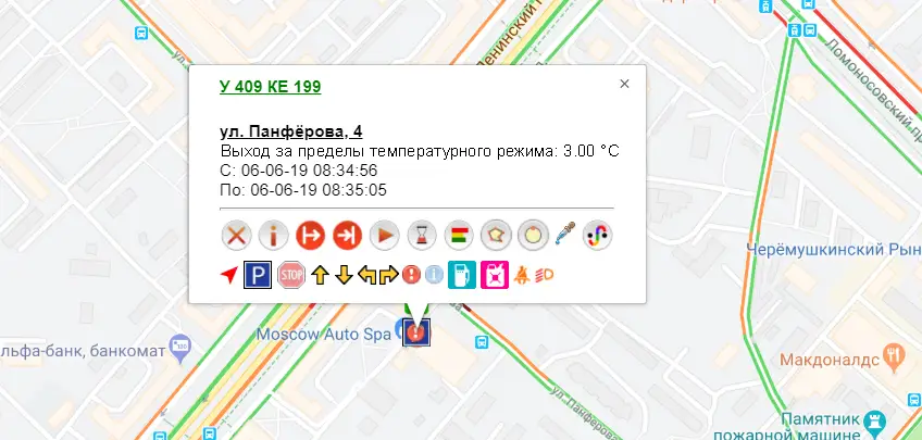 На протяжении всего маршрута вы получаете исчерпывающие данные о работе агрегатов и отслеживаете соблюдение требуемых температурных режимов в кузове автомобиля. В любой момент система мониторинга температуры покажет последнее зафиксированное значение датчиков.