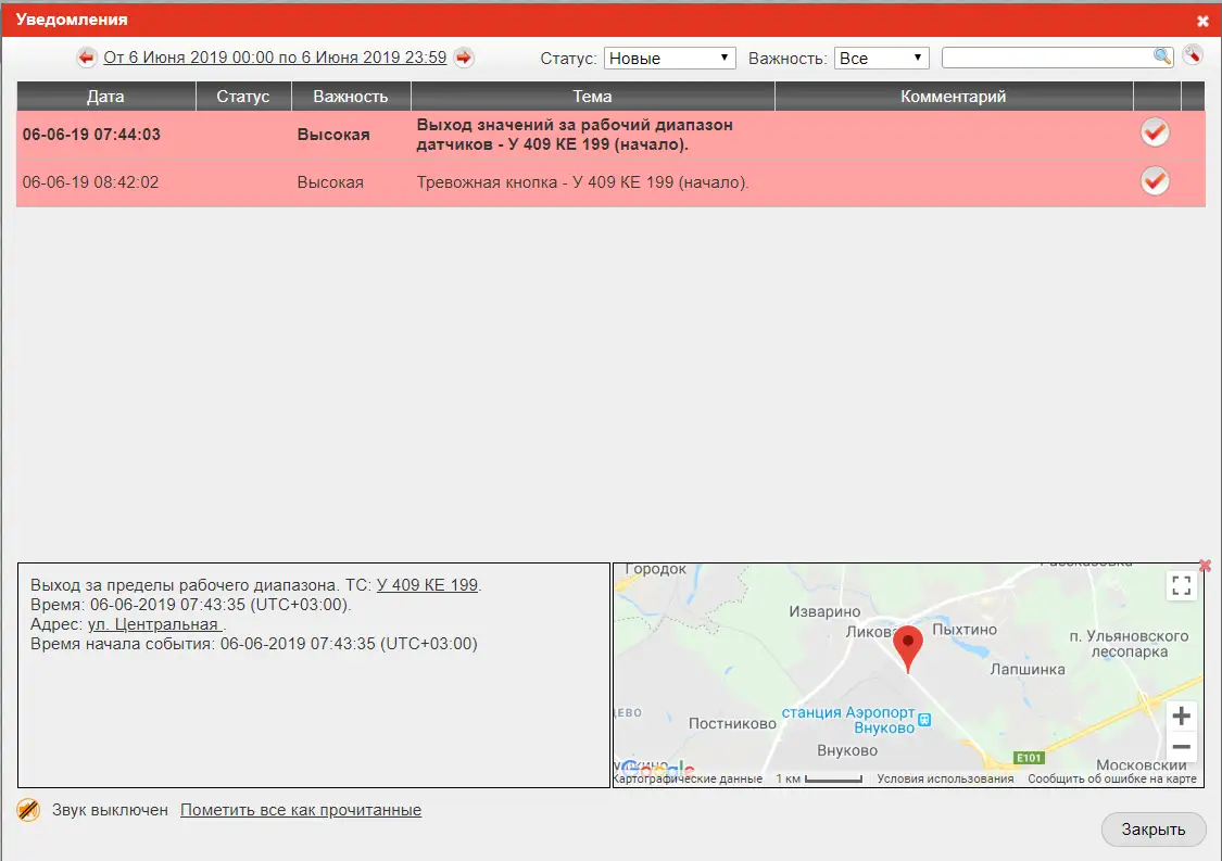Настройте ключевые уведомления о выходе значений датчиков за пределы допустимых норм и будьте в курсе зафиксированного нарушения, включая несанкционированное открытие дверей грузового отсека.