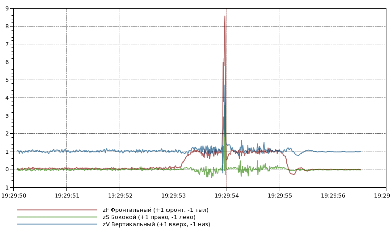 Состояние автомобиля измеряется 100 раз в секунду и система автоматически определяет что произошло ДТП