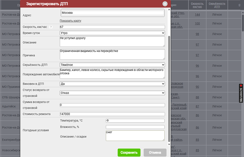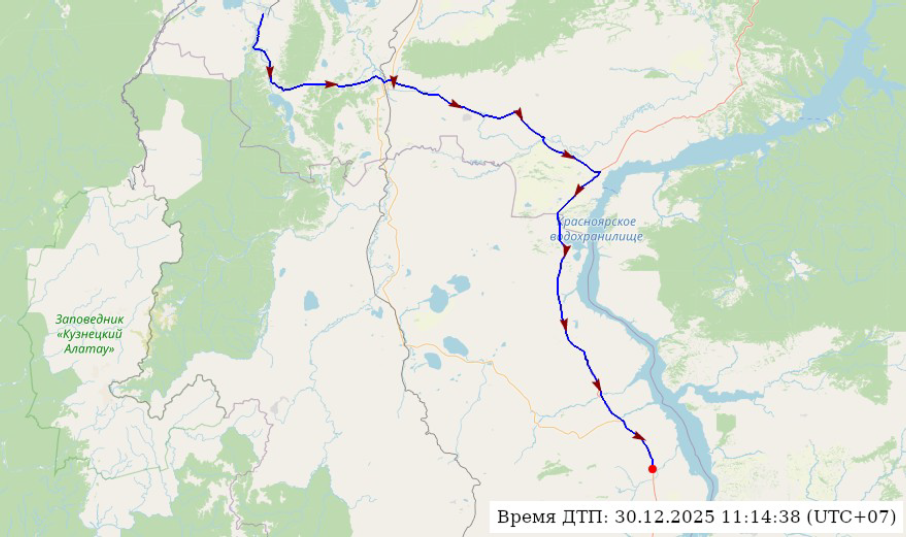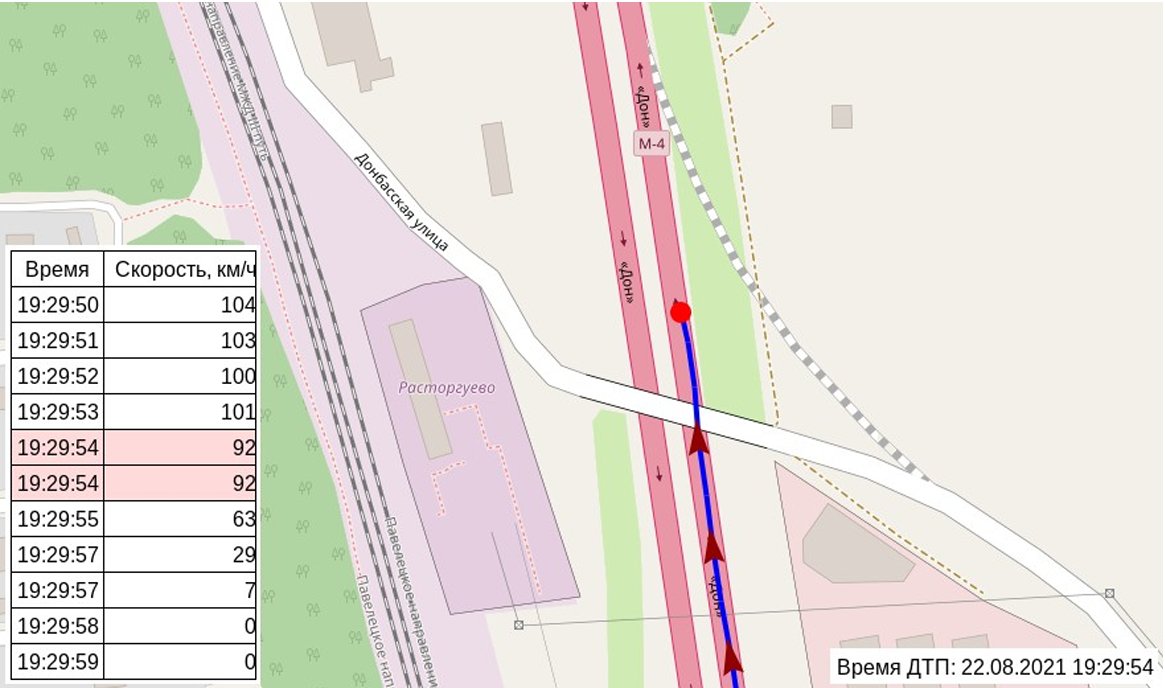 Местоположение ДТП отображается на карте с треком движения. Доступны Яндекс.Карты, Google Maps, OpenStreetMap