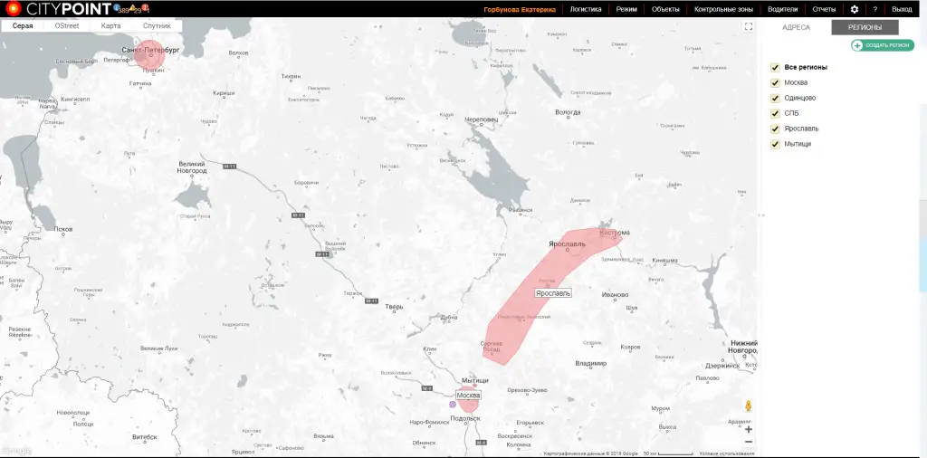 Все заявки автоматически группируются по "регионам" и отображаются в интерфейсе логиста. "Регионом" может быть: город, зона работы конкретного водителя, административный округ и другие области, с которыми удобно работать. За счет этого распределения сотрудник значительно экономит время на обработку заданий.
