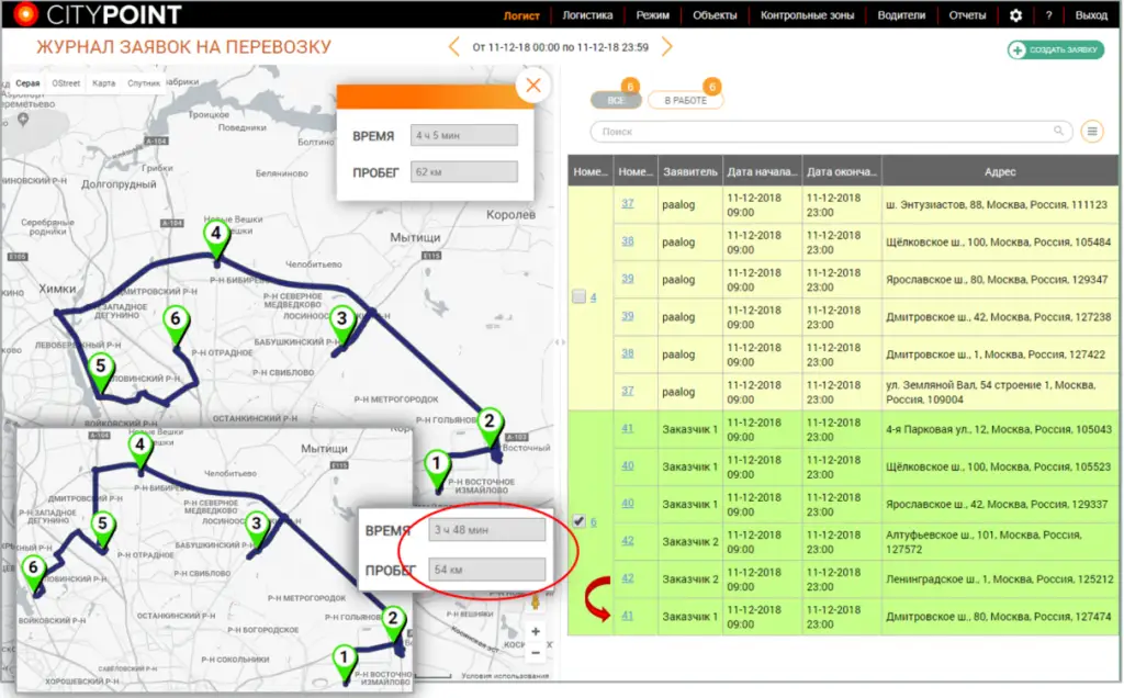 Модуль управления поездками СИТИПОИНТ существенно упрощает работу по сбору, обработке заявок и автоматизирует процесс формирования и контроля маршрутных заданий. Встроенный справочник исключает опечатки в адресе и гарантирует, что водители приедут в нужную точку. Все поступающие заявки предварительно автоматически группируются по "регионам" доставки, чтобы логисту было удобнее с ними работать.