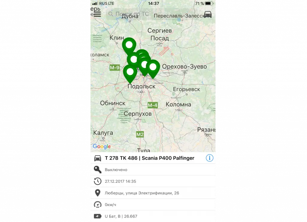 Быстрый контроль местоположения и треков движения транспортных средств предоставят исчерпывающую информацию о фактически выполненных работах, а детализация основных параметров по выбранному ТС способствует оперативной оценке его работы.