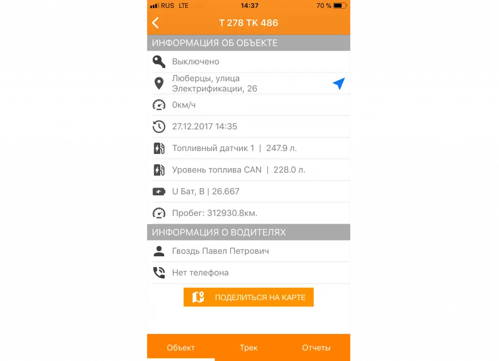 Инструментарий "Поделиться" предоставляет третьим лицам временный доступ к местонахождению и передвижению контролируемого транспортного средства.